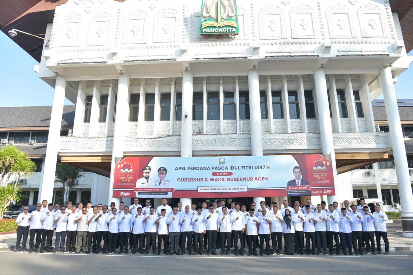 Habapublik.com, Banda Aceh — Sekretaris Daerah (Sekda) Aceh, M Nasir, memimpin apel pagi perdana pasca libur Hari Raya Idul Fitri 1447 Hijriah di halaman Kantor Gubernur Aceh, Rabu (25/3/2026).