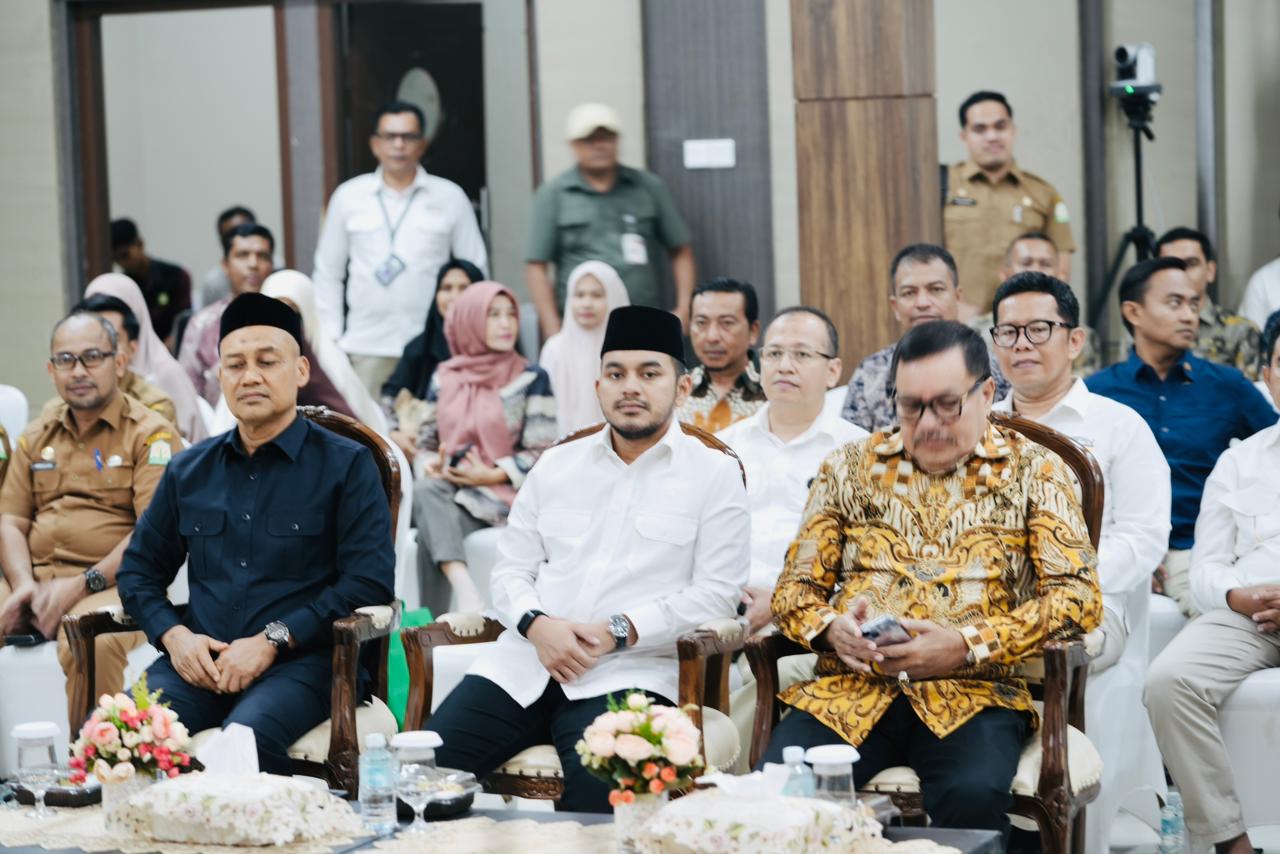 Ketua DPRK Nagan Raya, Mohd Rizki Ramadhan, bersama Bupati Nagan Raya, Teuku Raja Keumangan menghadiri kegiatan Penyerahan Laporan Keuangan Pemerintah (Unaudited) Tahun Anggaran 2025 yang diselenggarakan oleh Badan Pemeriksa Keuangan (BPK) Perwakilan Aceh, Selasa (31/3/2026). Foto: Zulfikar.