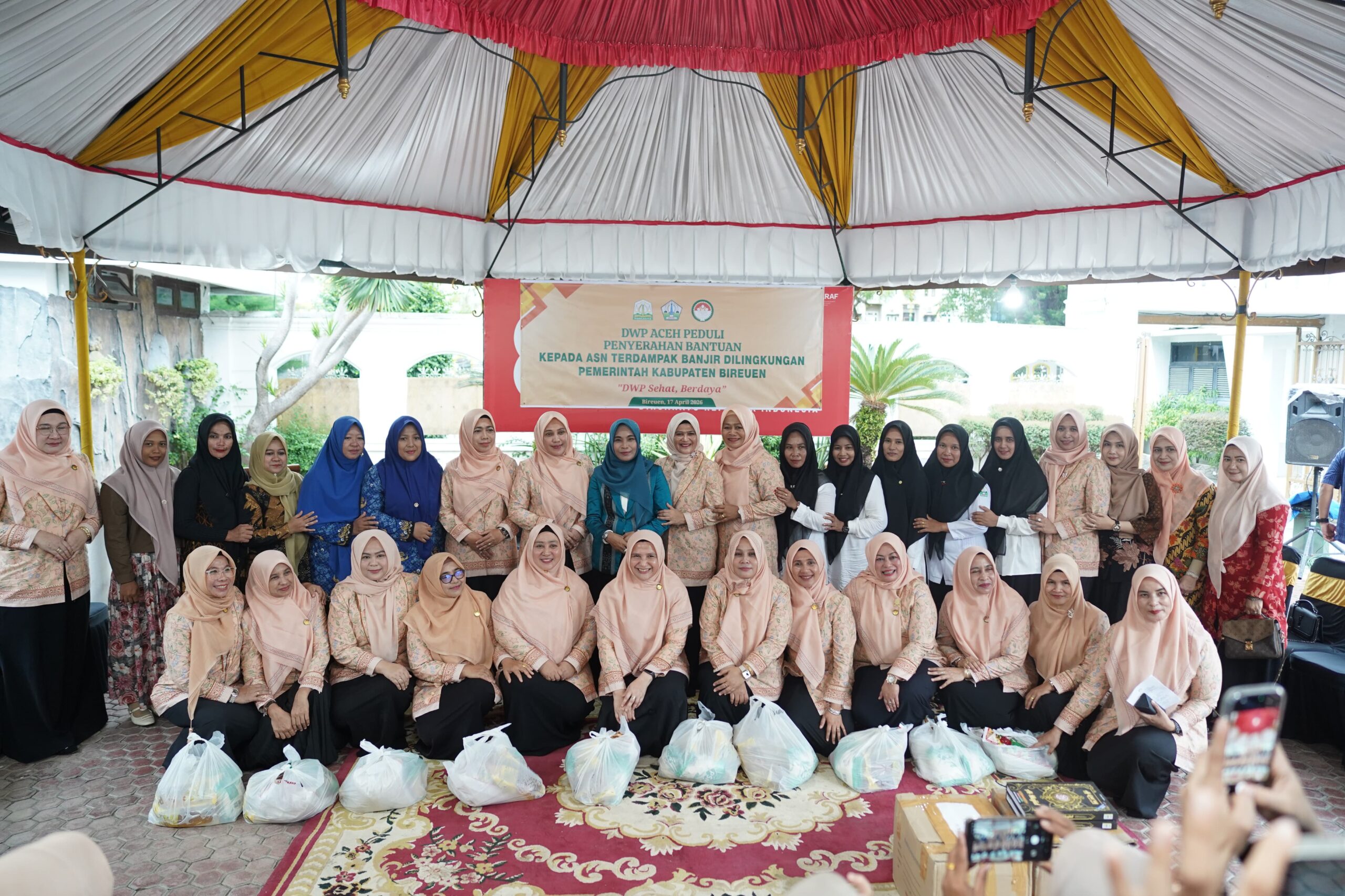 Habapublik.com, Bireuen – Ketua Dharma Wanita Persatuan (DWP) Aceh, Malahayati M. Nasir, bersama jajaran pengurus DWP Provinsi Aceh menyalurkan bantuan bagi keluarga aparatur sipil negara (ASN) terdampak bencana hidrometeorologi di Kabupaten Bireuen. Penyerahan bantuan tersebut berlangsung di Pendopo Bupati Bireuen, Jumat (17/4/2026).