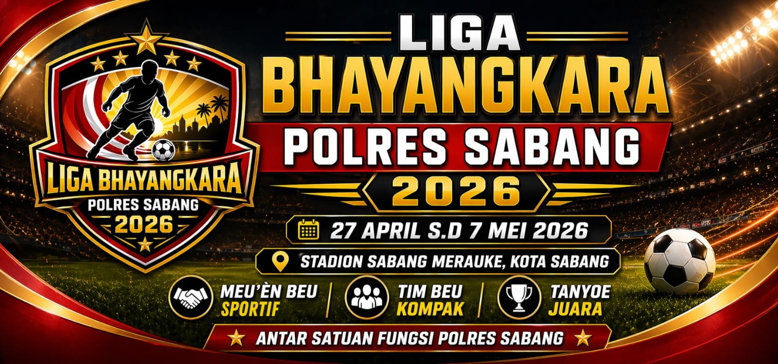 Polres Sabang mengundang seluruh masyarakat Kota Sabang untuk hadir, memberikan dukungan, dan bersama-sama menyukseskan Liga Bhayangkara Polres Sabang Tahun 2026.(*)