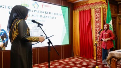 Habapublik.com, Banda Aceh: Bunda PAUD Aceh Marlina Muzakir mengukuhkan Ratna Sari Dewi sebagai Bunda Pendidikan…