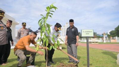 Meriahkan Hari Bhayangkara Ke-78, Sekda Aceh Besar dan Kapolres Tanam Pohon di Kota Jantho